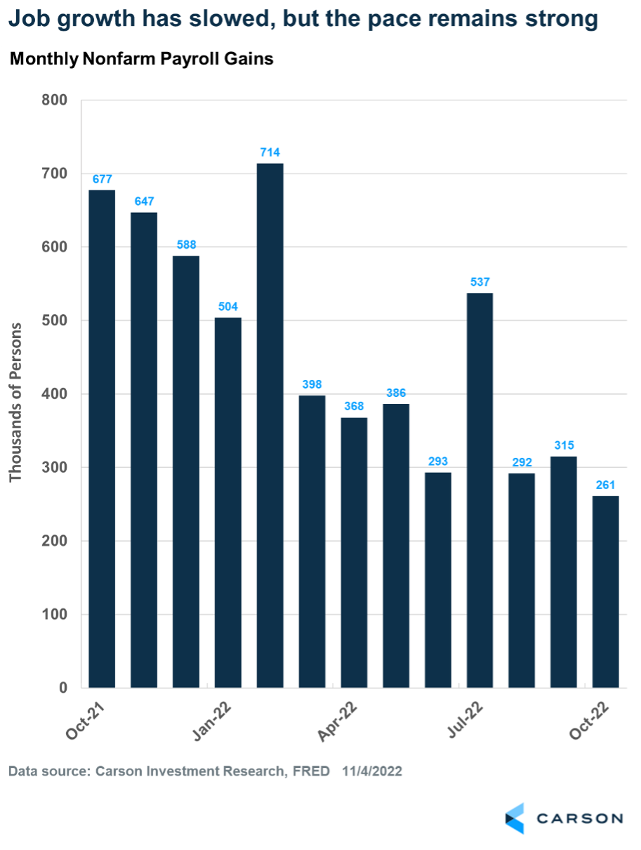 - The employment picture remains strong, with 263,000 jobs created in October.