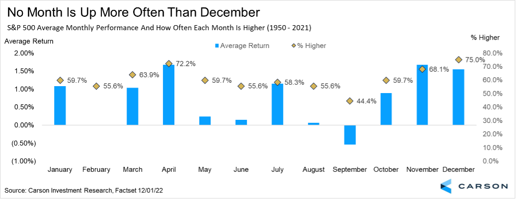 • December is typically positive for stocks.